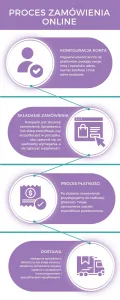 Przykładowy proces zamówienia z możliwością opracowania ułatwień dla użytkownika, na każdym z etapów.
