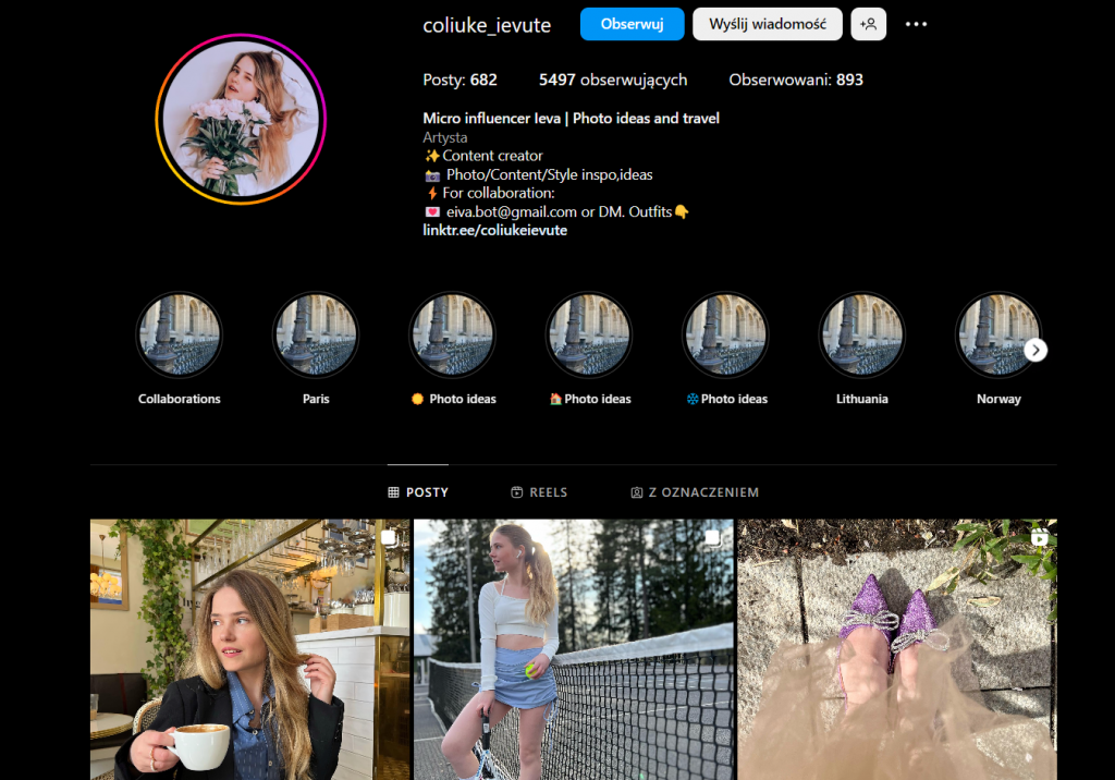 Przykładowe konto mikro influencera.